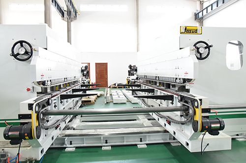 Is used to process the end of the floor tenon groove, he is generally divided into 6 axis (solid wood) 8 axis (composite) 10 axis, 12 axis (composite, lock), except the first axis is the jump cutter axis and longitudinal milling different, the rest of the axis and longitudinal milling slightly with, the minimum distance between the cutter and the chain, and on the compression, auxiliary compression device and longitudinal milling the same.